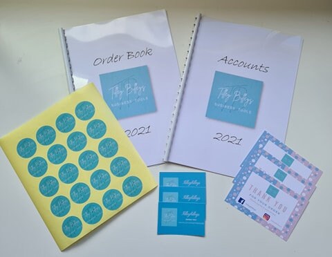 Welcome Everything that you could need for your business! 1 x Order book (50 pages) 1 x Account book (50 pages) 100 x stickers (5 sheets) 50 x Thank you cards 50 x Business cards The set comes in gloss finish for the professional look Please send me your logo in a jpeg form All backgrounds can be changed to be in line with your brand. I will design the thank you cards and send you a proof in a message. If you would like a logo designing please message me separately as this is an additional cost. All these products, logos are designed by myself.